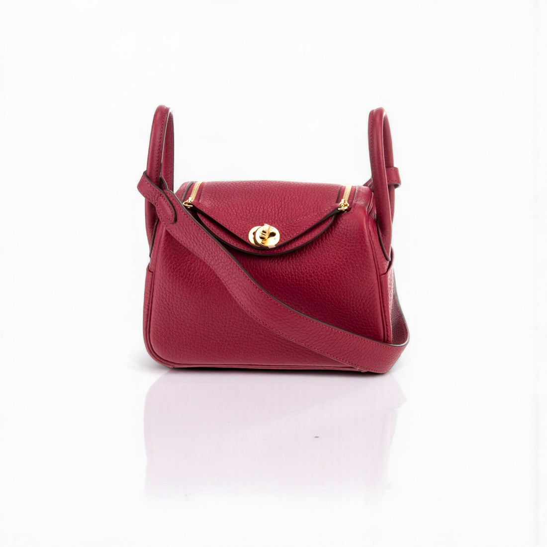 Hermès Lindy Mini Bag in Rouge H Clemence Leather with Gold Hardware