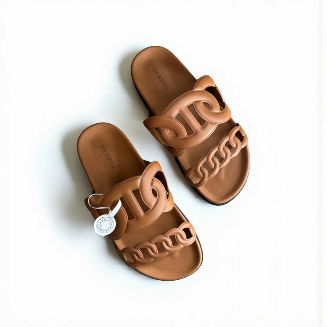 Hermes Extra Sandal, Calfskin Upper, Rubber Sole, showcases the perfect blend of luxury and practicality....