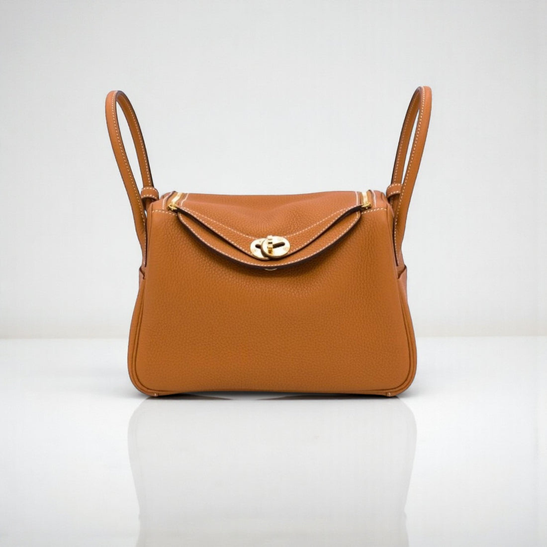 Hermès Lindy Mini Bag in Toffee Clemence Leather with Gold Hardware, a refined embodiment of...
