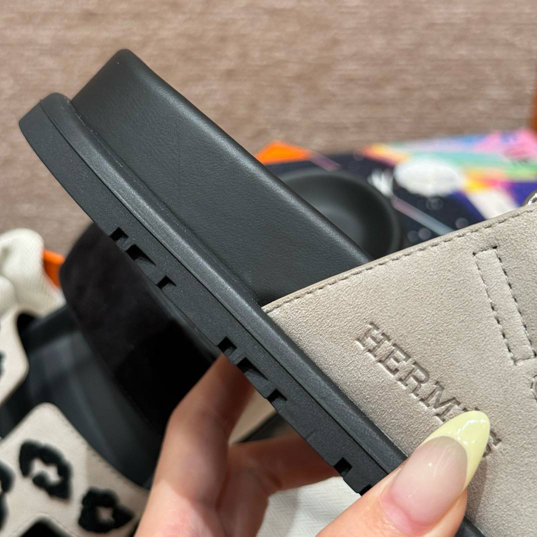 Hermes Chypre Sandals, Beige Espuisse, Chamois Leather, Rubber Outsole