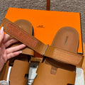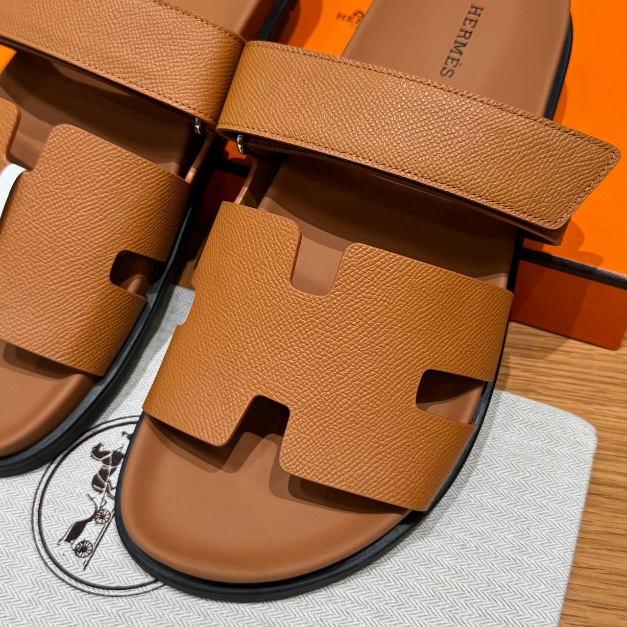 Hermes Chypre Sandals, Epsom Gold, Calfskin Bottom, Rubber Outsole