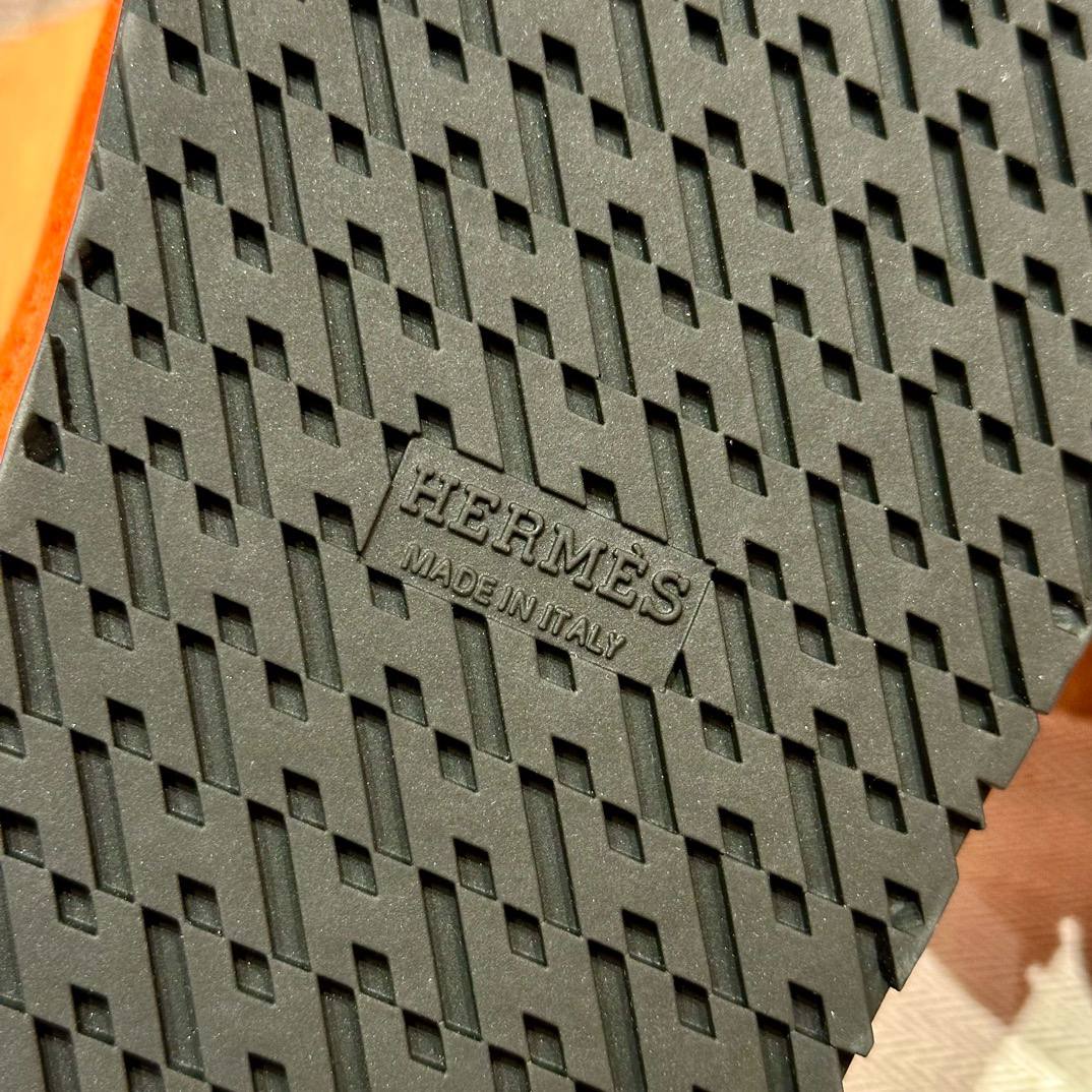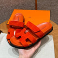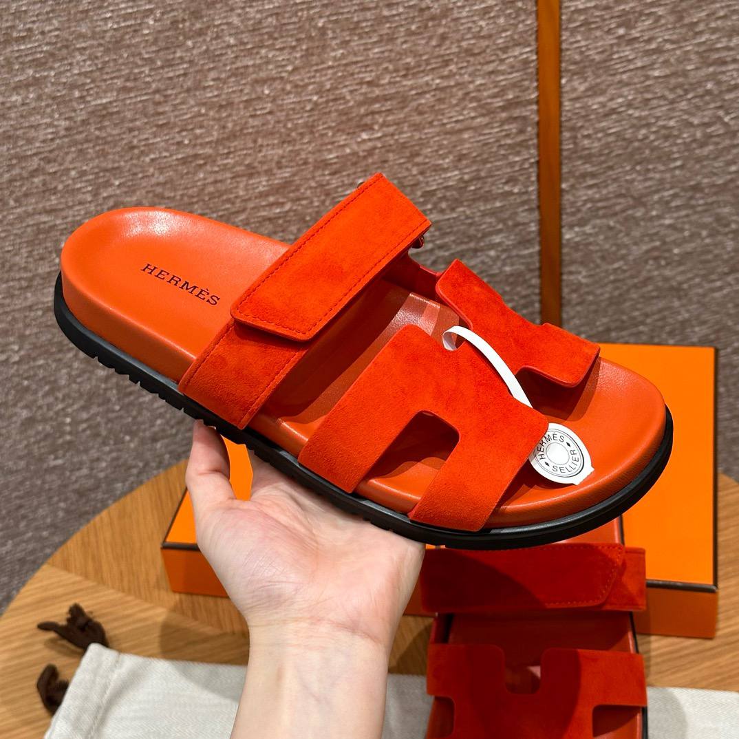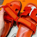 Hermes Chypre Sandals, Orange, Chamois Leather, Rubber Outsole