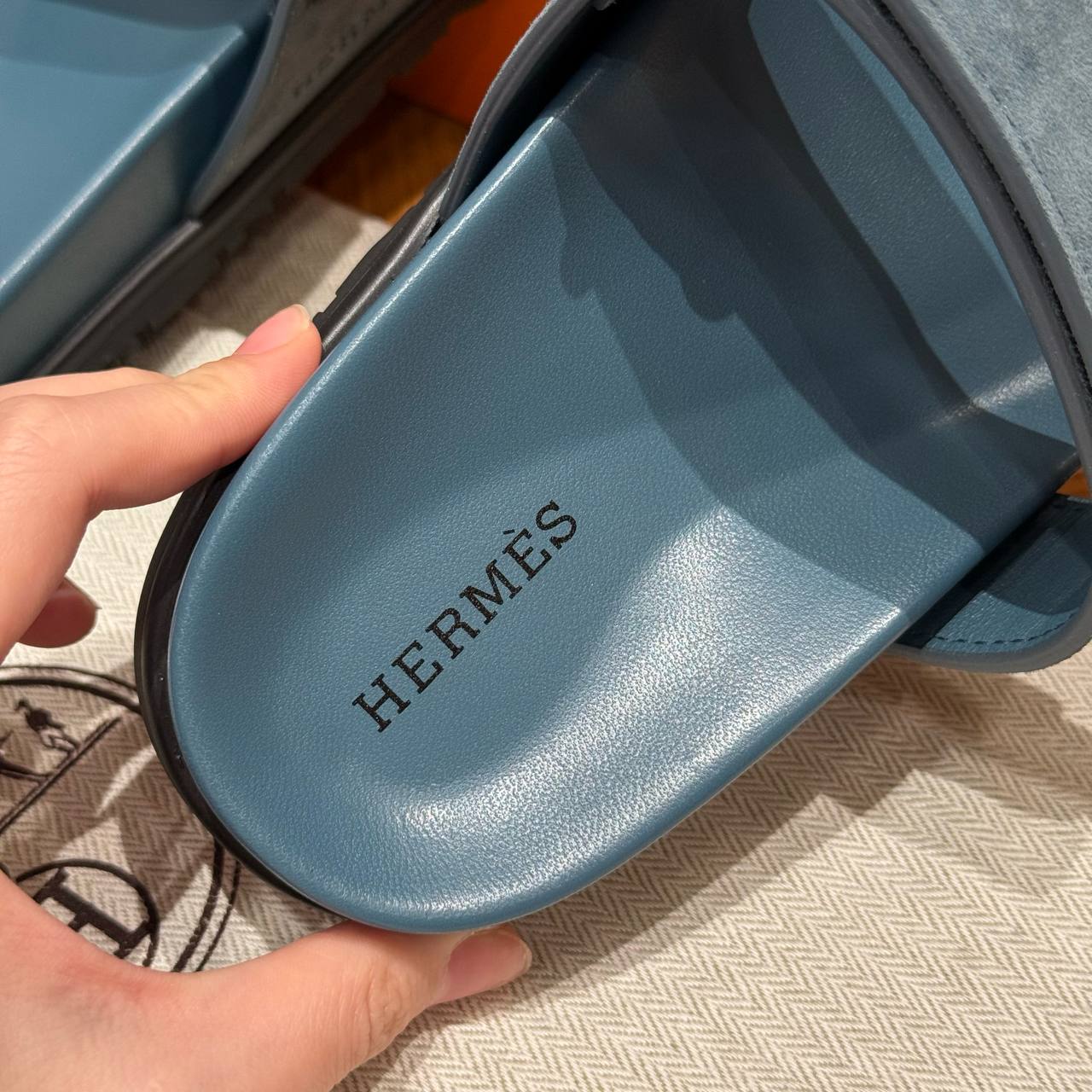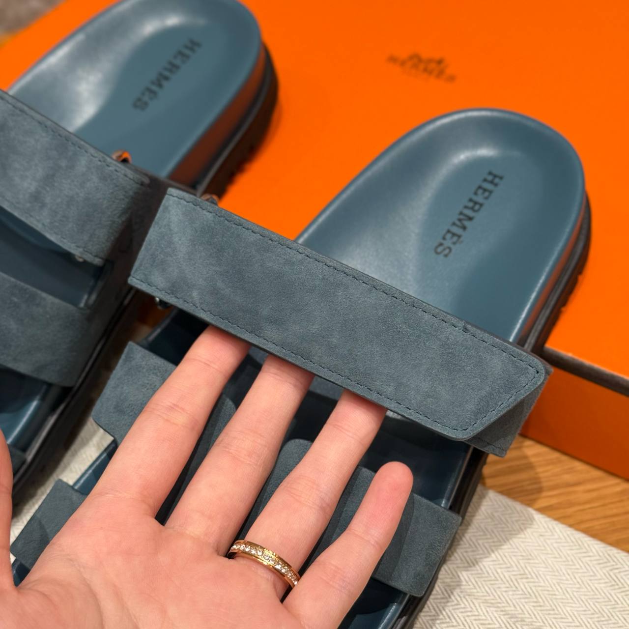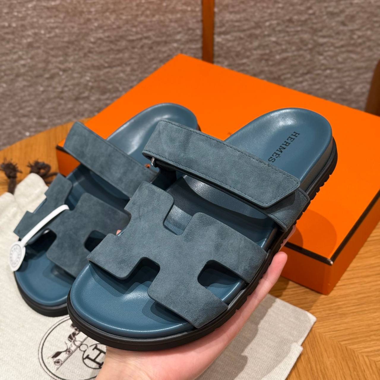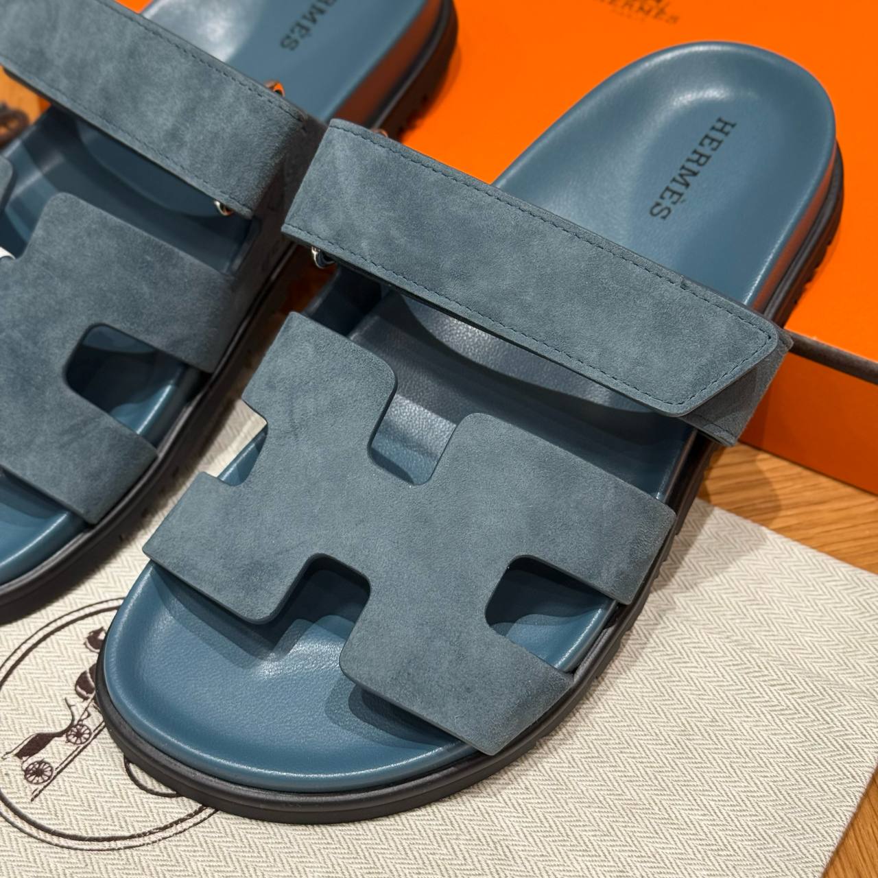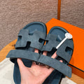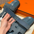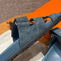 Hermes Chypre Sandals, Purplish Blue, Chamois Leather, Rubber Outsole