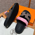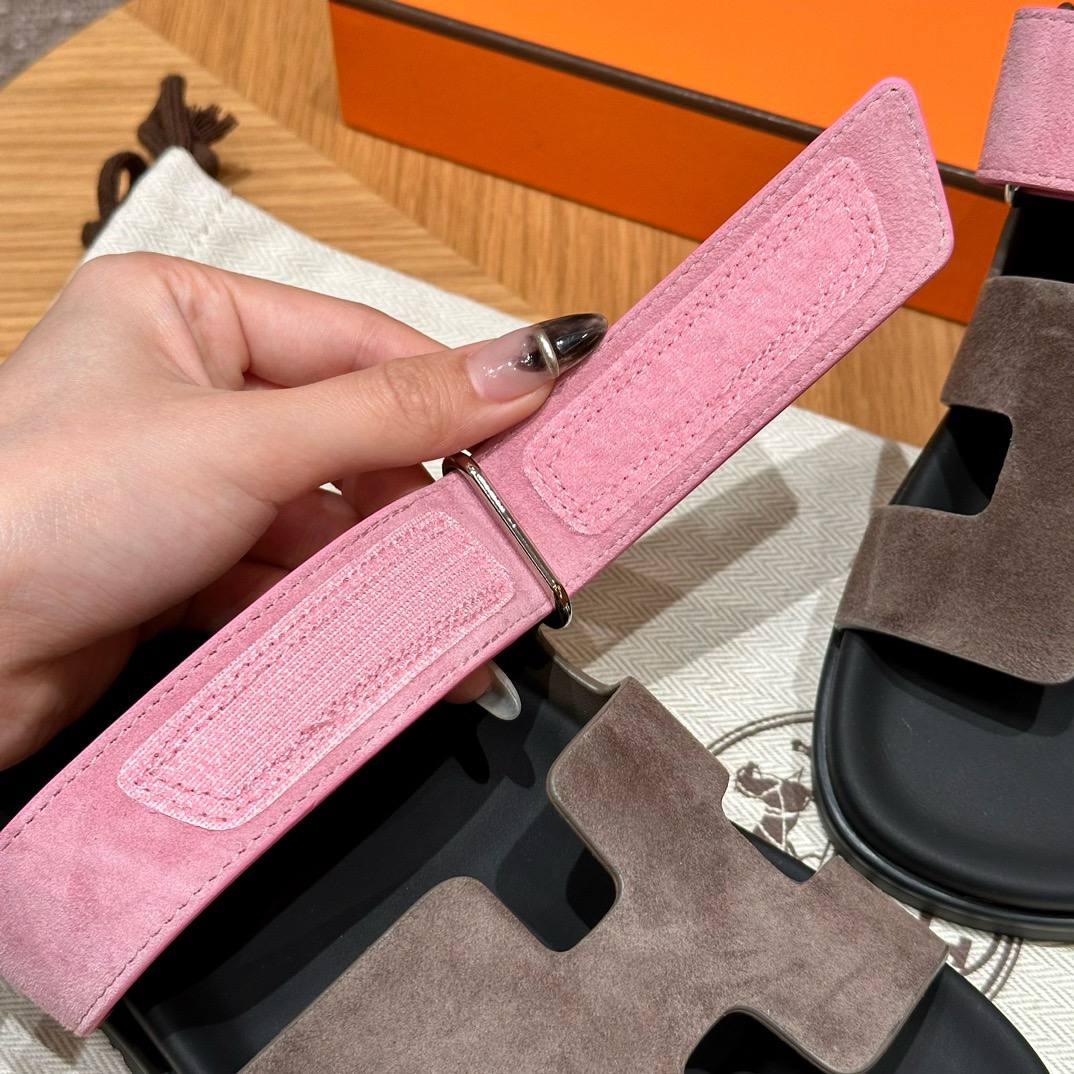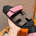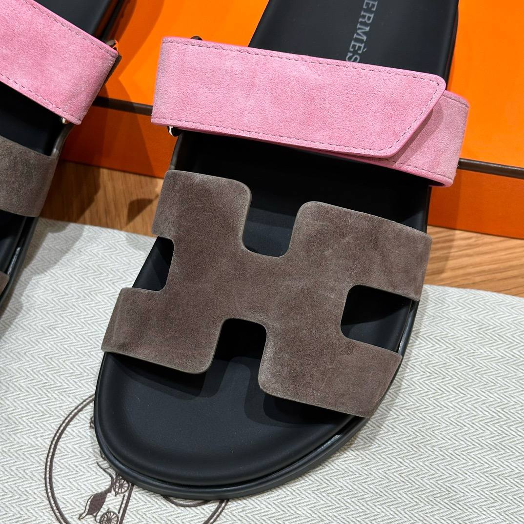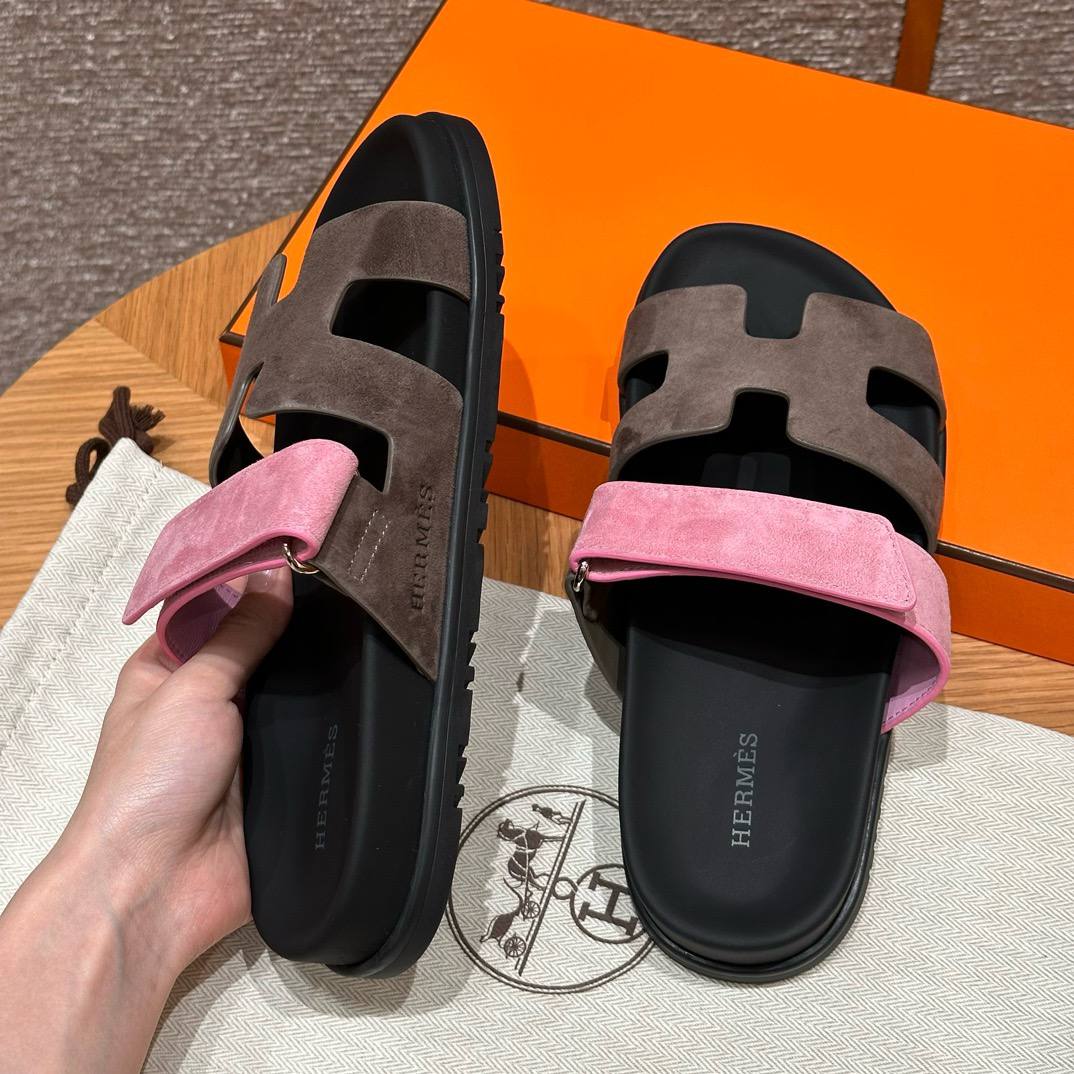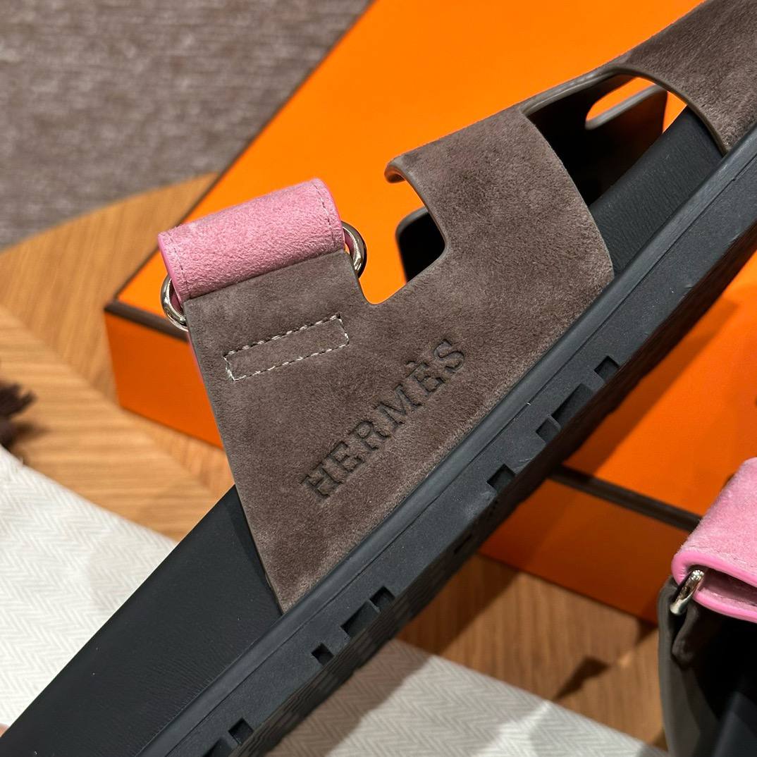 Hermes Chypre Sandals, Vert Toundra & Pink, Chamois Leather, Rubber Outsole