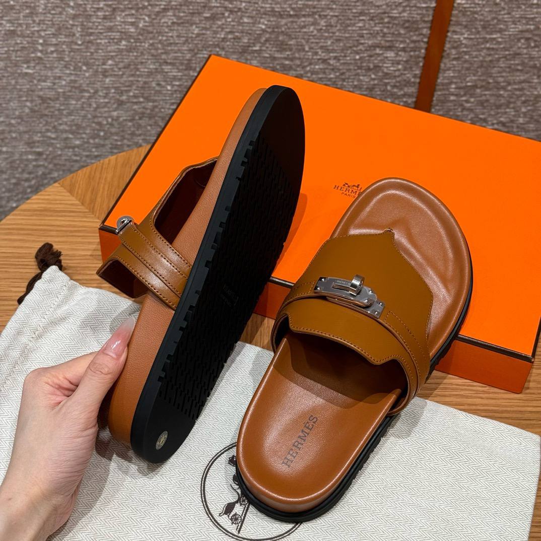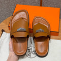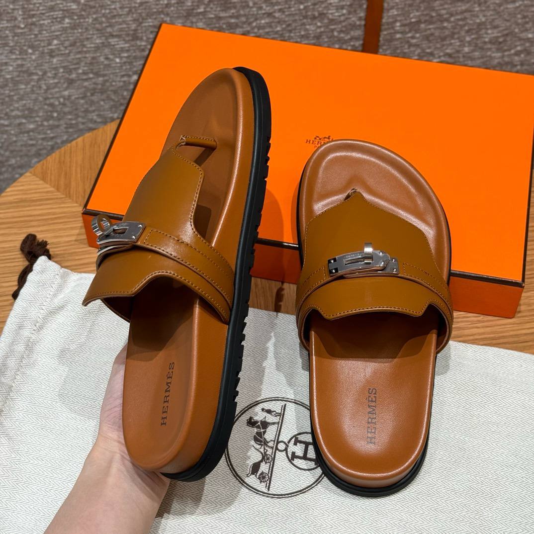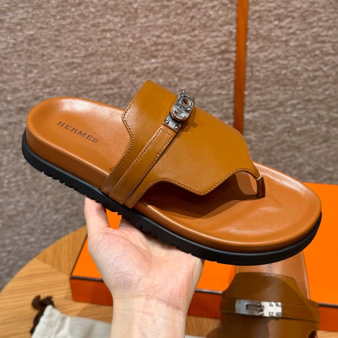 Hermes Empire Sandals, Silver Hardware, Calfskin, Rubber Outsole