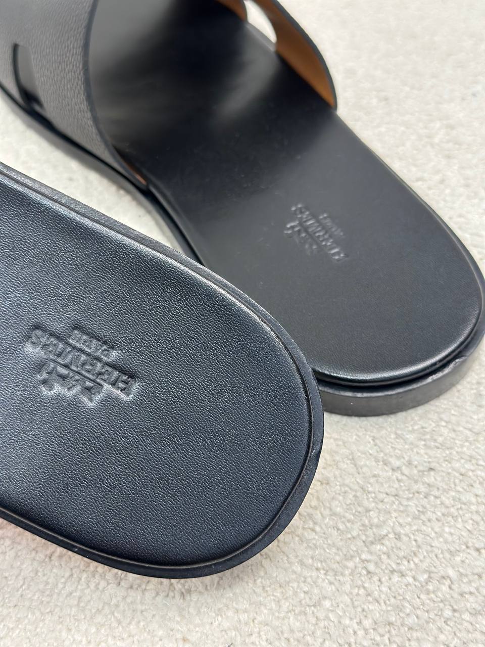 Hermes Izmir Men Sandal, Epsom Leather, Dermal Outsole, Sole Scratch & Damaged Box