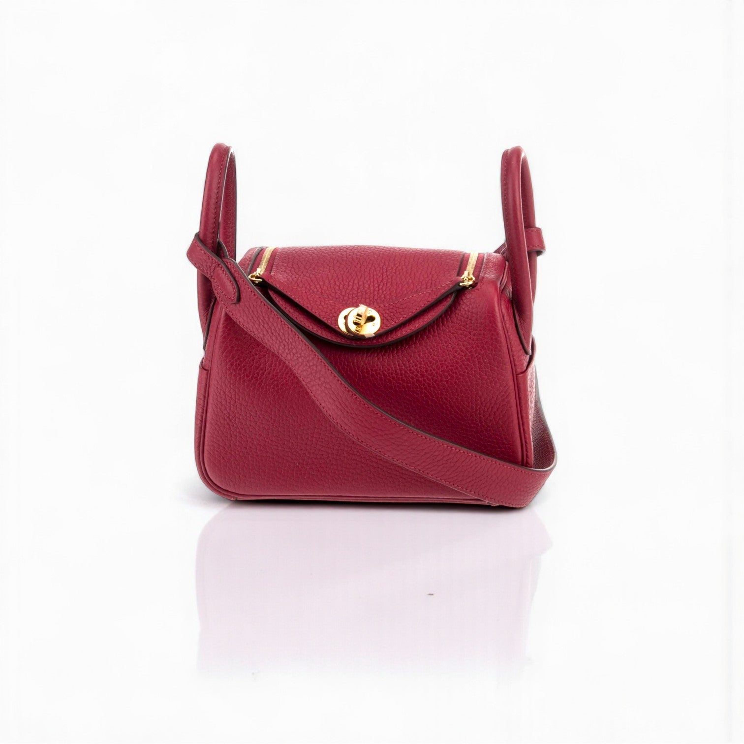 Hermès Lindy Mini 13x18x9cm Clemence Bordeaux Gold