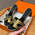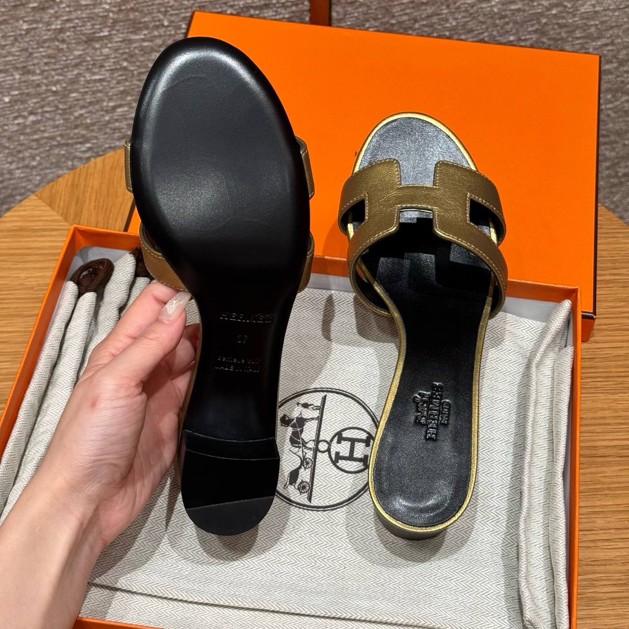 Hermes Oasis Sandals, Swift Dore, Soft Leather, 1.5" Heels, Dermal Outsole