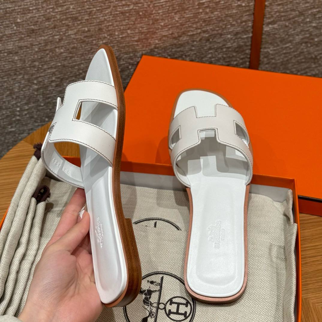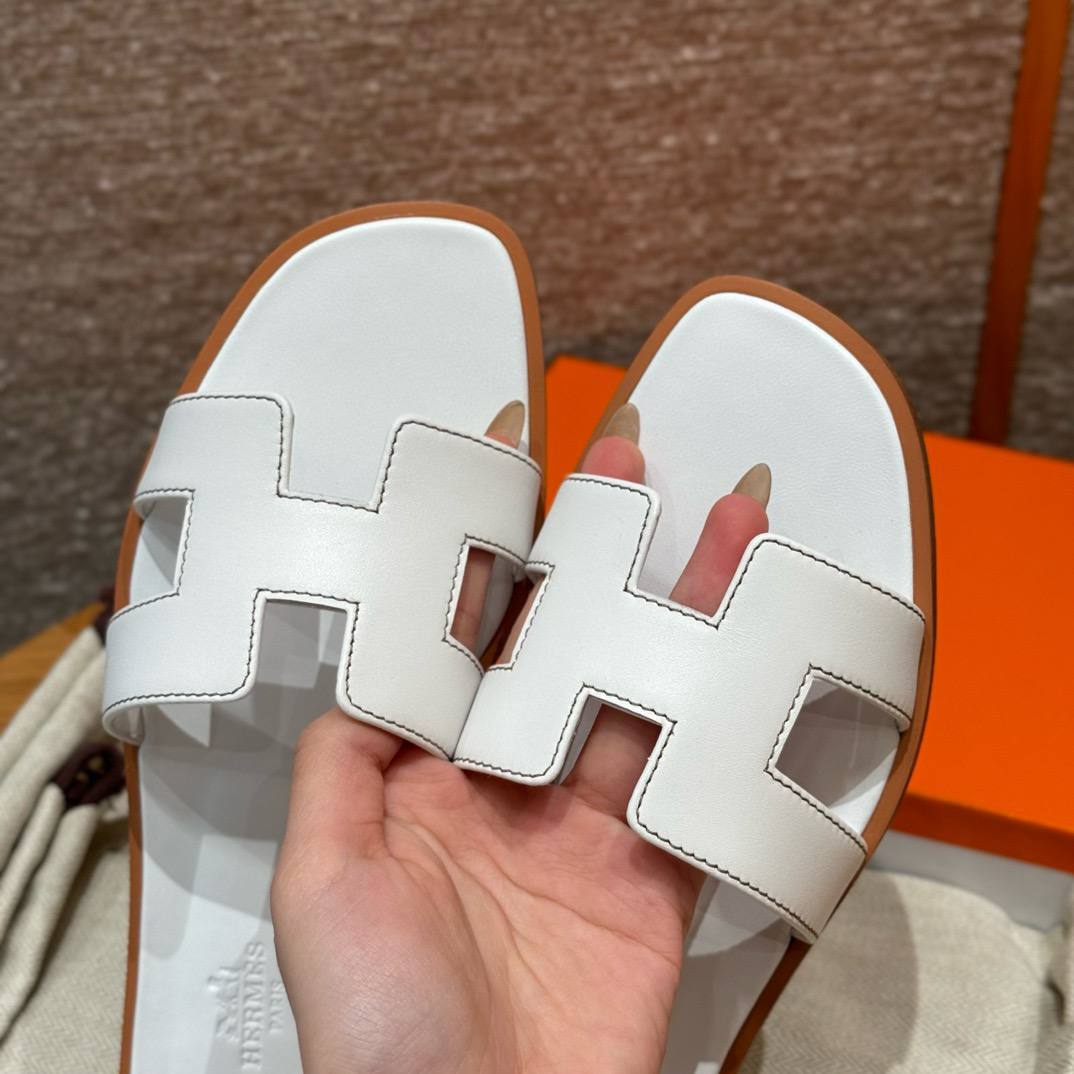 Hermes Oran Soft Sandal, Blanc, Calfskin/Swift, Dermal Outsole