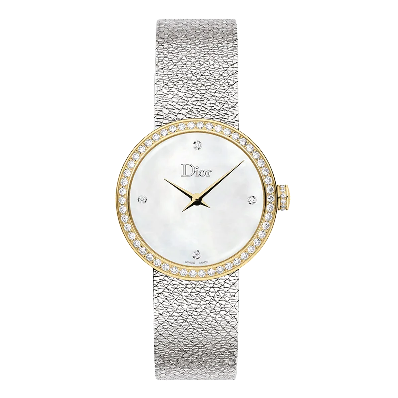 La D de Dior Satine Gold Watch with Pearl & Zircon Dial