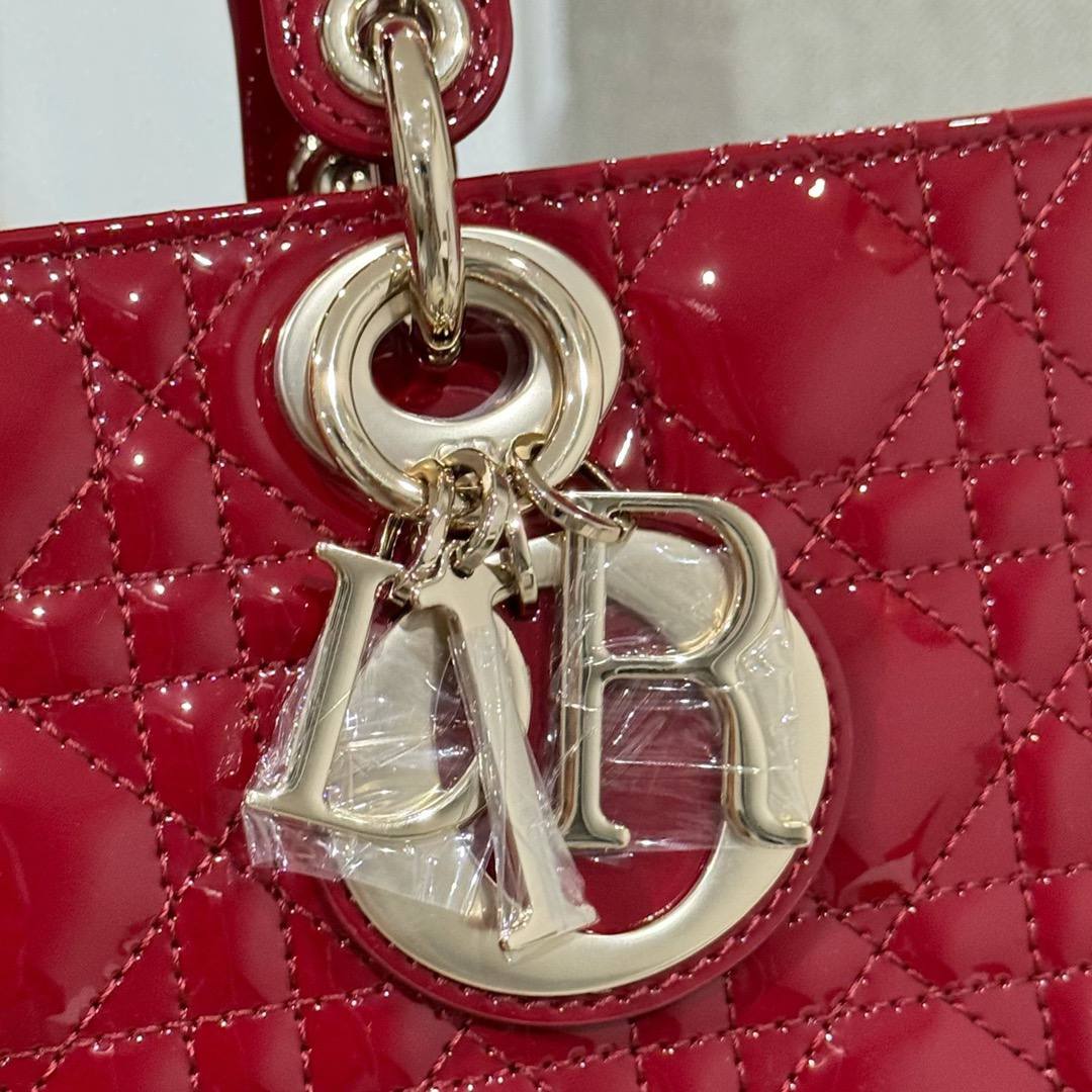 Lady D-Joy Medium Bag 26cm Red Patent Leather