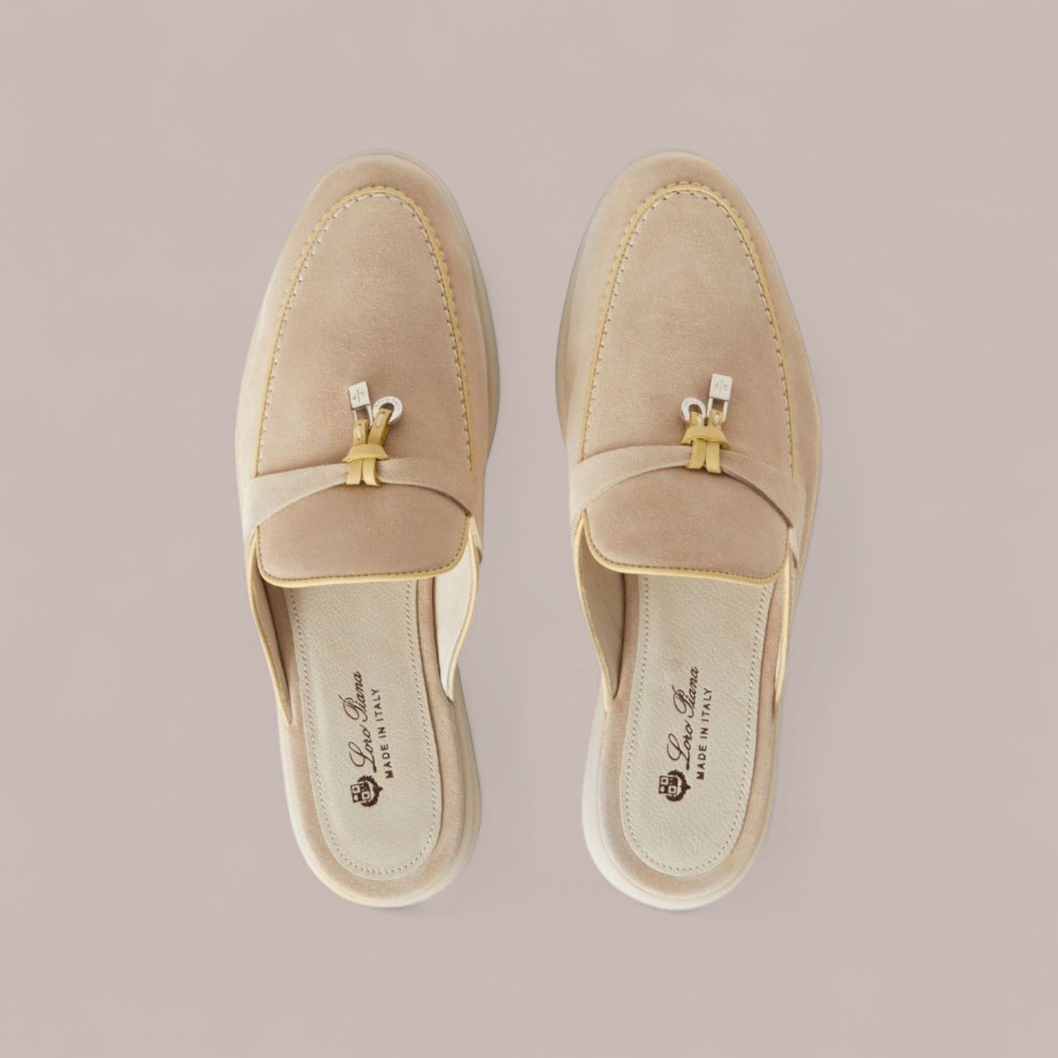 Loro Piana Babouche Charms Walk Loafer Suede, Bubble Tea, Rubber Sole, Box Damaged