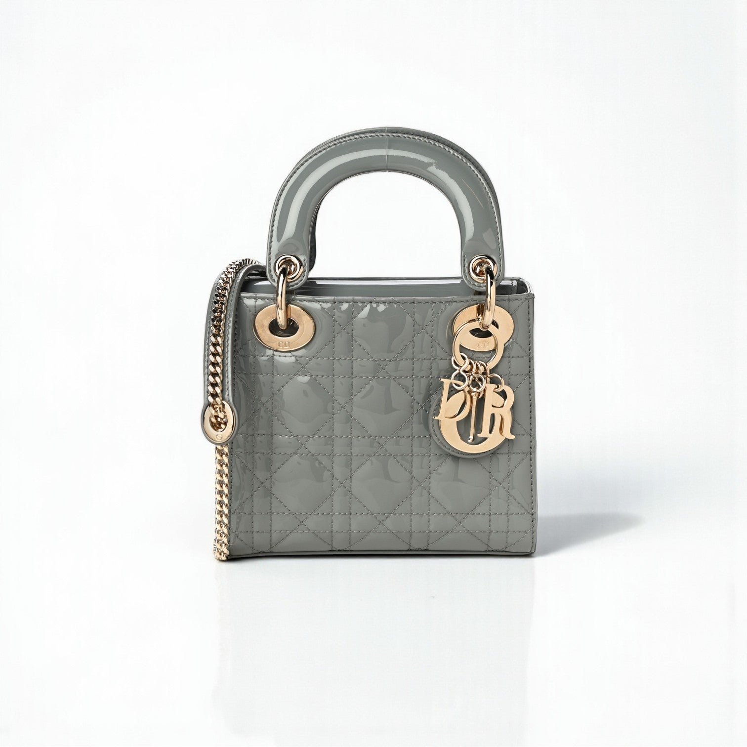 Mini Lady Dior Bag 17cm Gray Patent Leather Gold Hardware