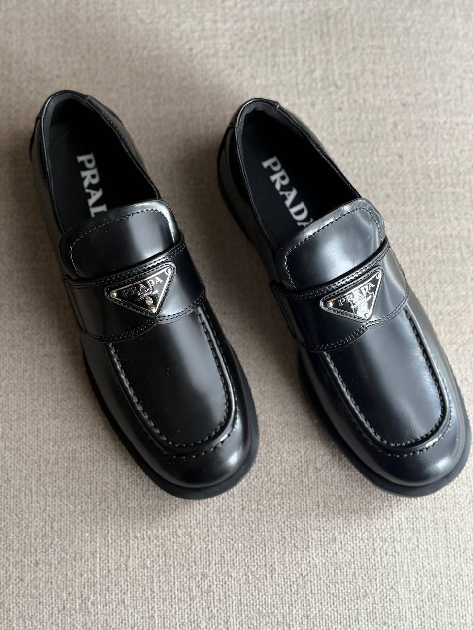 Prada Loafers in Black, Shiny Leather, Box Damaged